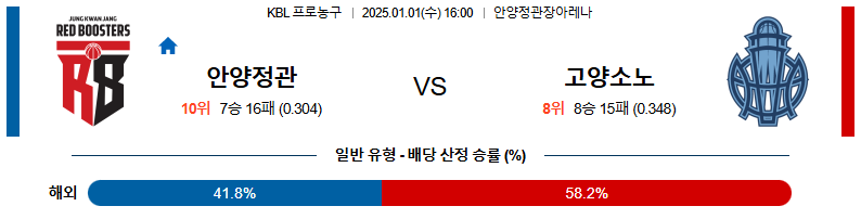 안양정관장 대 고양소노 KBL 01월01일 맞대결 생중계, 스포츠중계, 스포츠분석
