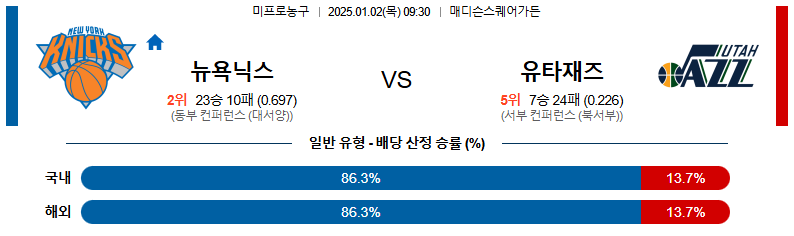뉴욕닉스 대 유타 NBA 01월02일 맞대결 생중계, 스포츠중계, 스포츠분석