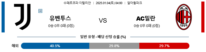유벤투스 대 AC밀란 이탈리아슈퍼컵 01월04일 맞대결 생중계, 스포츠중계, 스포츠분석