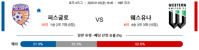 퍼스글로리 대 웨스턴유나이티드 호주1부 01월03일 맞대결 생중계, 스포츠중계, 스포츠분석