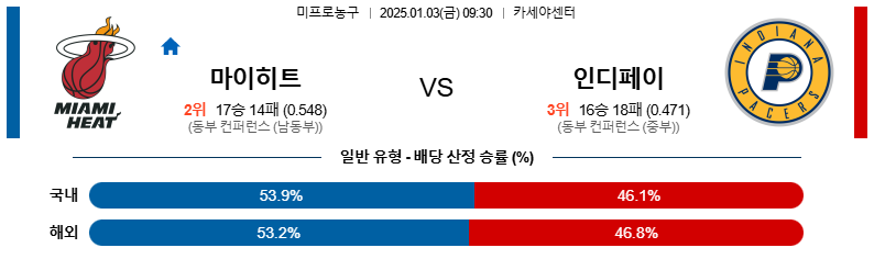 마이애미 대 인디애나 NBA 01월03일 맞대결 생중계, 스포츠중계, 스포츠분석