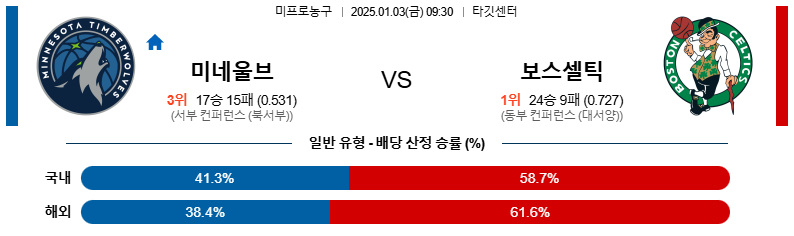 미네소타 대 보스턴 NBA 01월03일 맞대결 생중계, 스포츠중계, 스포츠분석