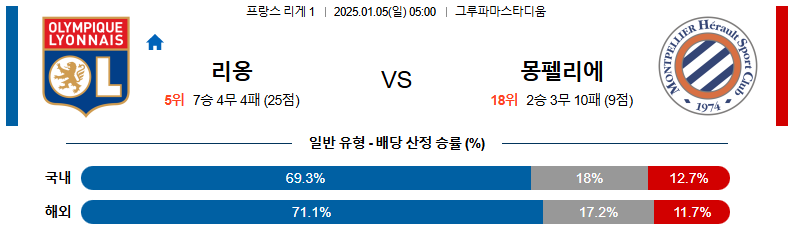 리옹 대 몽펠리에 리그앙 01월05일 맞대결 생중계, 스포츠중계, 스포츠분석