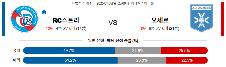 스트라스부르 대 오세르 리그앙 01월05일 맞대결 생중계, 스포츠중계, 스포츠분석
