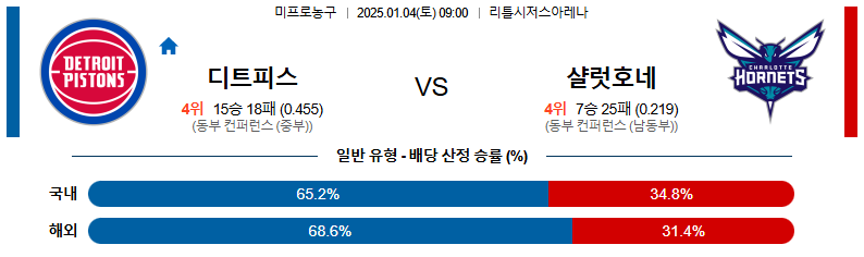 디트로이트 대 샬럿 NBA 01월04일 맞대결 생중계, 스포츠중계, 스포츠분석