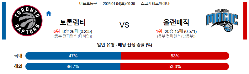 토론토 대 올랜도 NBA 01월04일 맞대결 생중계, 스포츠중계, 스포츠분석