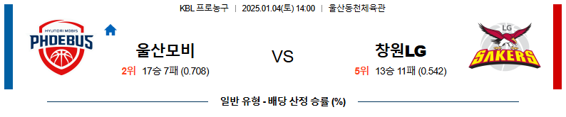 현대모비스 대 창원LG KBL 01월04일 맞대결 생중계, 스포츠중계, 스포츠분석