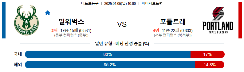 밀워키 대 포틀랜드 NBA 01월05일 맞대결 생중계, 스포츠중계, 스포츠분석