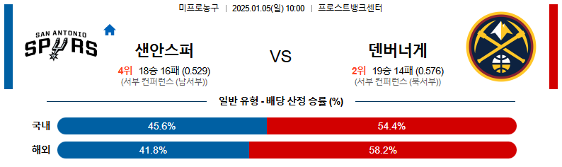 샌안토니오 대 덴버 NBA 01월05일 맞대결 생중계, 스포츠중계, 스포츠분석