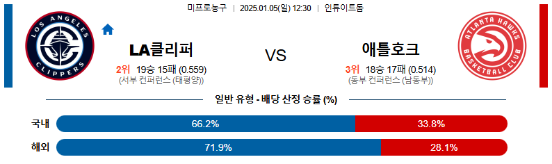 LA클리퍼스 대 애틀란타 NBA 01월05일 맞대결 생중계, 스포츠중계, 스포츠분석