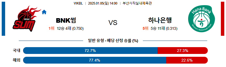 BNK썸 대 하나은행 WKBL 01월05일 맞대결 생중계, 스포츠중계, 스포츠분석