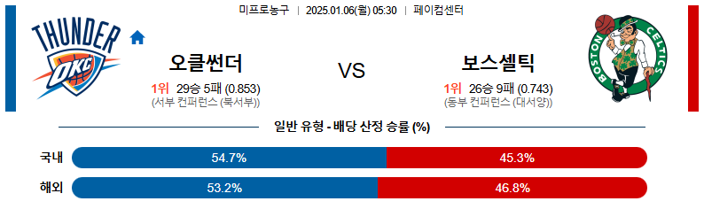 오클라호마 대 보스턴 NBA 01월06일 맞대결 생중계, 스포츠중계, 스포츠분석