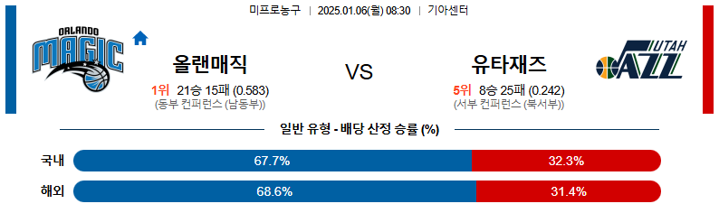 올랜도 대 유타 NBA 01월06일 맞대결 생중계, 스포츠중계, 스포츠분석