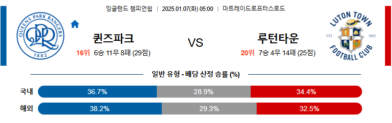 QPR 대 루턴타운 챔피언쉽 01월07일 맞대결 생중계, 스포츠중계, 스포츠분석