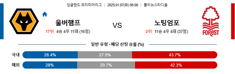 울버햄튼 대 노팅엄 EPL 01월07일 맞대결 생중계, 스포츠중계, 스포츠분석