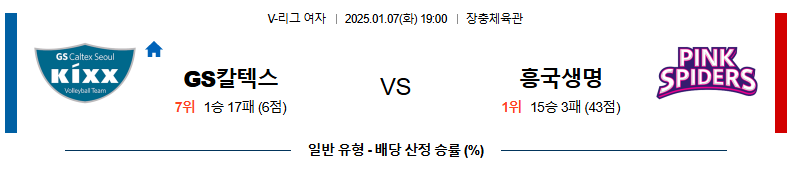 GS칼텍스 대 흥국생명 V리그(여) 01월07일 맞대결 생중계, 스포츠중계, 스포츠분석
