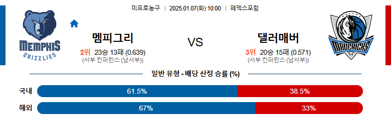 멤피스 대 댈러스 NBA 01월07일 맞대결 생중계, 스포츠중계, 스포츠분석