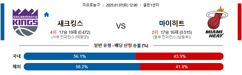 새크라멘토 대 마이애미 NBA 01월07일 맞대결 생중계, 스포츠중계, 스포츠분석