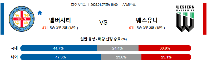 멜버른시티 대 웨스턴U 호주1부 01월07일 맞대결 생중계, 스포츠중계, 스포츠분석