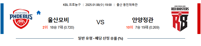 울산현대모비스 대 안양정관장 KBL 01월08일 맞대결 생중계, 스포츠중계, 스포츠분석