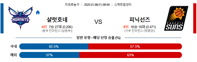 샬럿 대 피닉스 NBA 01월08일 맞대결 생중계, 스포츠중계, 스포츠분석