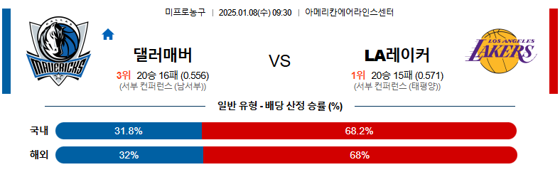 댈러스 대 LA레이커스 NBA 01월08일 맞대결 생중계, 스포츠중계, 스포츠분석