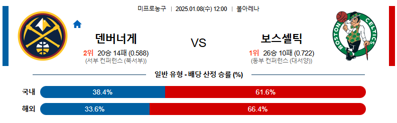 덴버 대 보스턴 NBA 01월08일 맞대결 생중계, 스포츠중계, 스포츠분석
