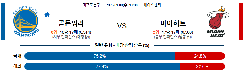 골든스테이트 대 마이애미 NBA 01월08일 맞대결 생중계, 스포츠중계, 스포츠분석