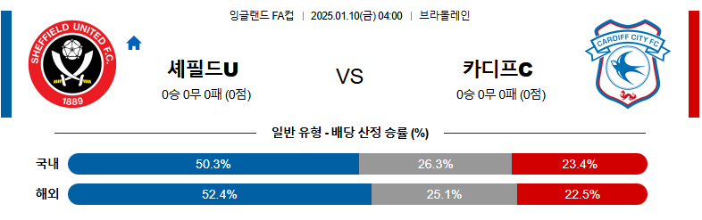 셰필드U 대 카디프시티 FA컵 01월10일 맞대결 생중계, 스포츠중계, 스포츠분석