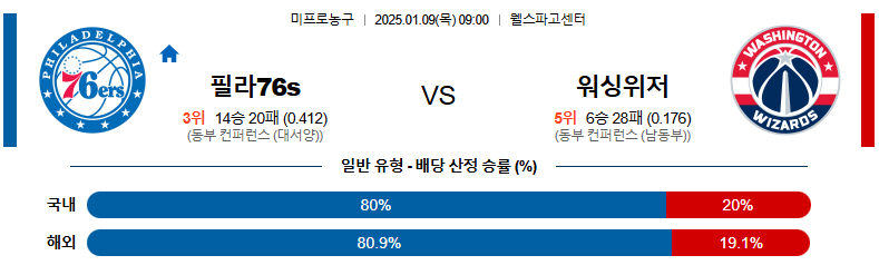 필라델피아 대 워싱턴 NBA 01월09일 맞대결 생중계, 스포츠중계, 스포츠분석