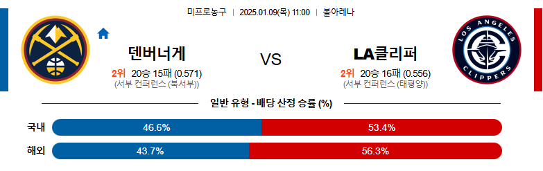 덴버 대 LA클리퍼스 NBA 01월09일 맞대결 생중계, 스포츠중계, 스포츠분석