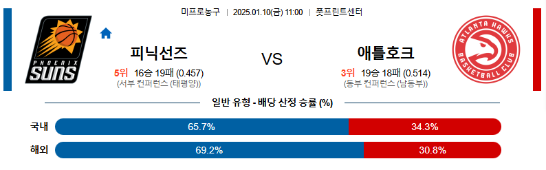 피닉스 대 애틀란타 NBA 01월10일 맞대결 생중계, 스포츠중계, 스포츠분석
