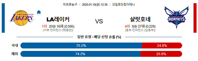 LA레이커스 대 샬럿 NBA 01월10일 맞대결 생중계, 스포츠중계, 스포츠분석