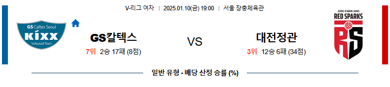 GS칼텍스 대 정관장 V리그(여) 01월10일 맞대결 생중계, 스포츠중계, 스포츠분석