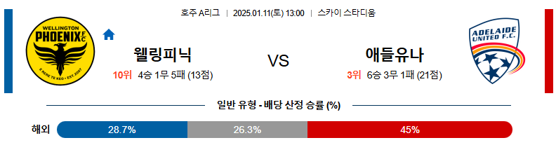 웰링턴 대 애들레이드 호주1부 01월11일 맞대결 생중계, 스포츠중계, 스포츠분석