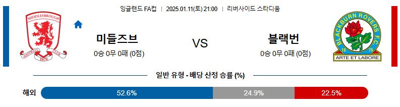 미들즈브러 대 블랙번 FA컵 01월11일 맞대결 생중계, 스포츠중계, 스포츠분석