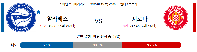 알라베스 대 지로나 라리가 01월11일 맞대결 생중계, 스포츠중계, 스포츠분석