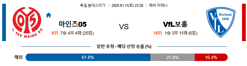마인츠 대 보훔 분데스리가 01월11일 맞대결 생중계, 스포츠중계, 스포츠분석