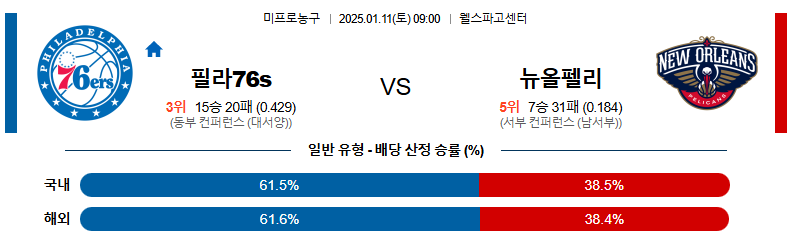 필라델피아 대 뉴올리언스 NBA 01월11일 맞대결 생중계, 스포츠중계, 스포츠분석