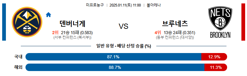 덴버 대 브루클린 NBA 01월11일 맞대결 생중계, 스포츠중계, 스포츠분석