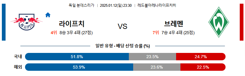 라이프치히 대 브레멘 분데스리가 01월12일 맞대결 생중계, 스포츠중계, 스포츠분석