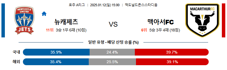 뉴캐슬제츠 대 맥아서 호주1부 01월12일 맞대결 생중계, 스포츠중계, 스포츠분석