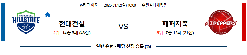 현대건설 대 페퍼저축은행 V리그(여) 01월12일 맞대결 생중계, 스포츠중계, 스포츠분석