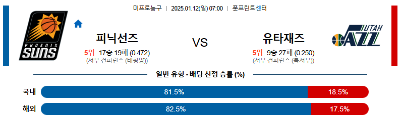 피닉스 대 유타 NBA 01월12일 맞대결 생중계, 스포츠중계, 스포츠분석