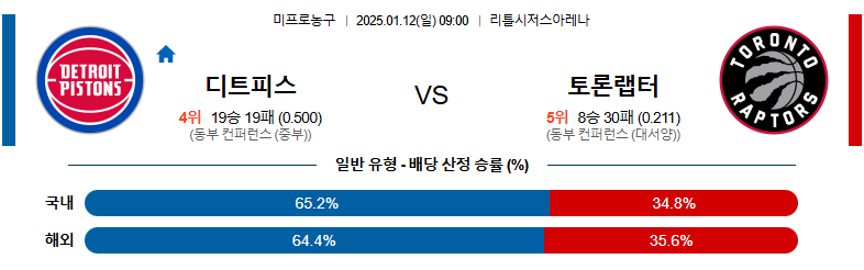 디트로이트 대 토론토 NBA 01월12일 맞대결 생중계, 스포츠중계, 스포츠분석