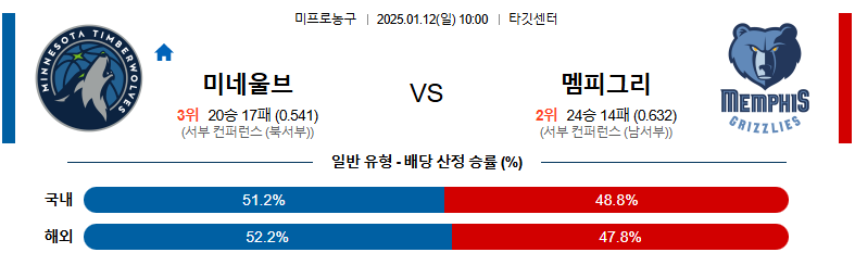 미네소타 대 멤피스 NBA 01월12일 맞대결 생중계, 스포츠중계, 스포츠분석