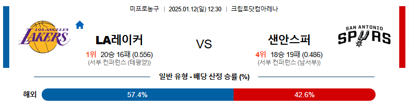LA레이커스 대 샌안토니오 NBA 01월12일 맞대결 생중계, 스포츠중계, 스포츠분석