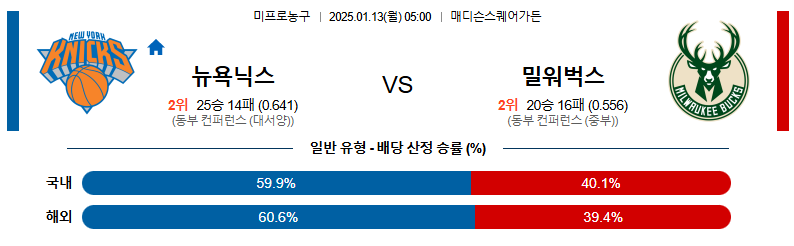 뉴욕닉스 대 밀워키 NBA 01월13일 맞대결 생중계, 스포츠중계, 스포츠분석
