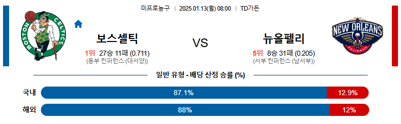 보스턴 대 뉴올리언스 NBA 01월13일 맞대결 생중계, 스포츠중계, 스포츠분석
