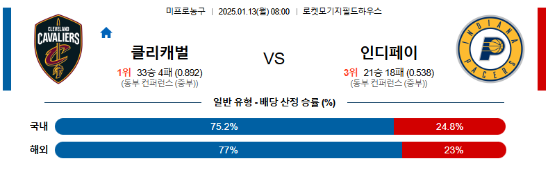 클리블랜드 대 인디애나 NBA 01월13일 맞대결 생중계, 스포츠중계, 스포츠분석